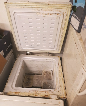 Unwrapped raw cuts of meat were also found tossed on a plastic bucket, exposed to contaminants and vermin.