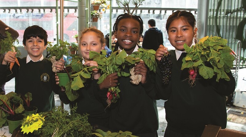 Children from Southwark schools sold a wide variety of fruit and vegetables they had grown at the market in The Harvest Sale, raising £576.75 for charity FareShare.