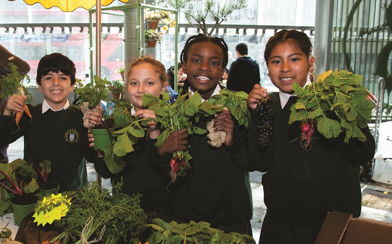 Children from Southwark schools sold a wide variety of fruit and vegetables they had grown at the market in The Harvest Sale, raising £576.75 for charity FareShare.