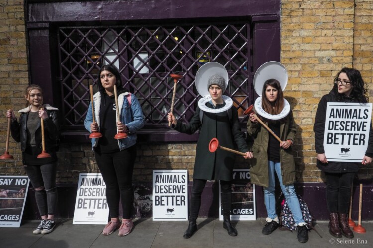 The Humane League was armed with plungers and toilet seats to claim the agency Spider in Leathermarket Street, Bermondsey is allegedly blocking comments from members of the public.