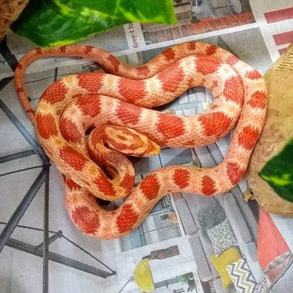 American corn snakes are often mistaken for their venomous cousins copperhead snakes — identifiable by their hourglass-shaped bands.