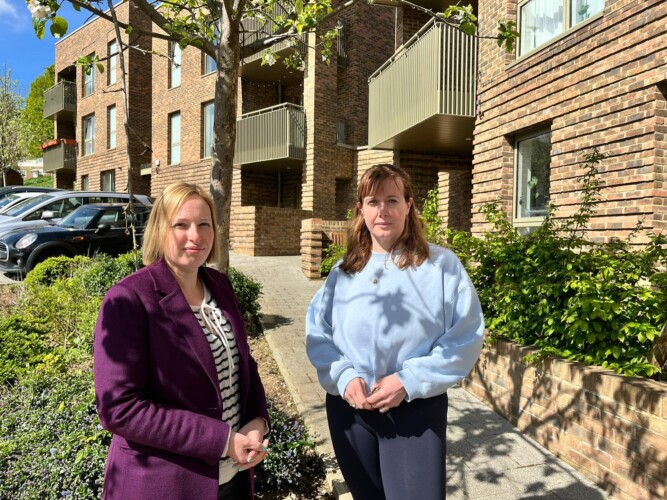Pictured top: Councillor Claire Bonham (left) with Auckland Rise resident Sinead Harmey – discussing the service charges at the estate (Picture: Claire Bonham)