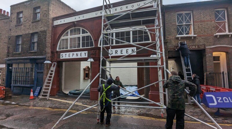 Pictured top: Creating the film set – with a mocked-up Stepney Green Underground Station (Picture: University of Greenwich)