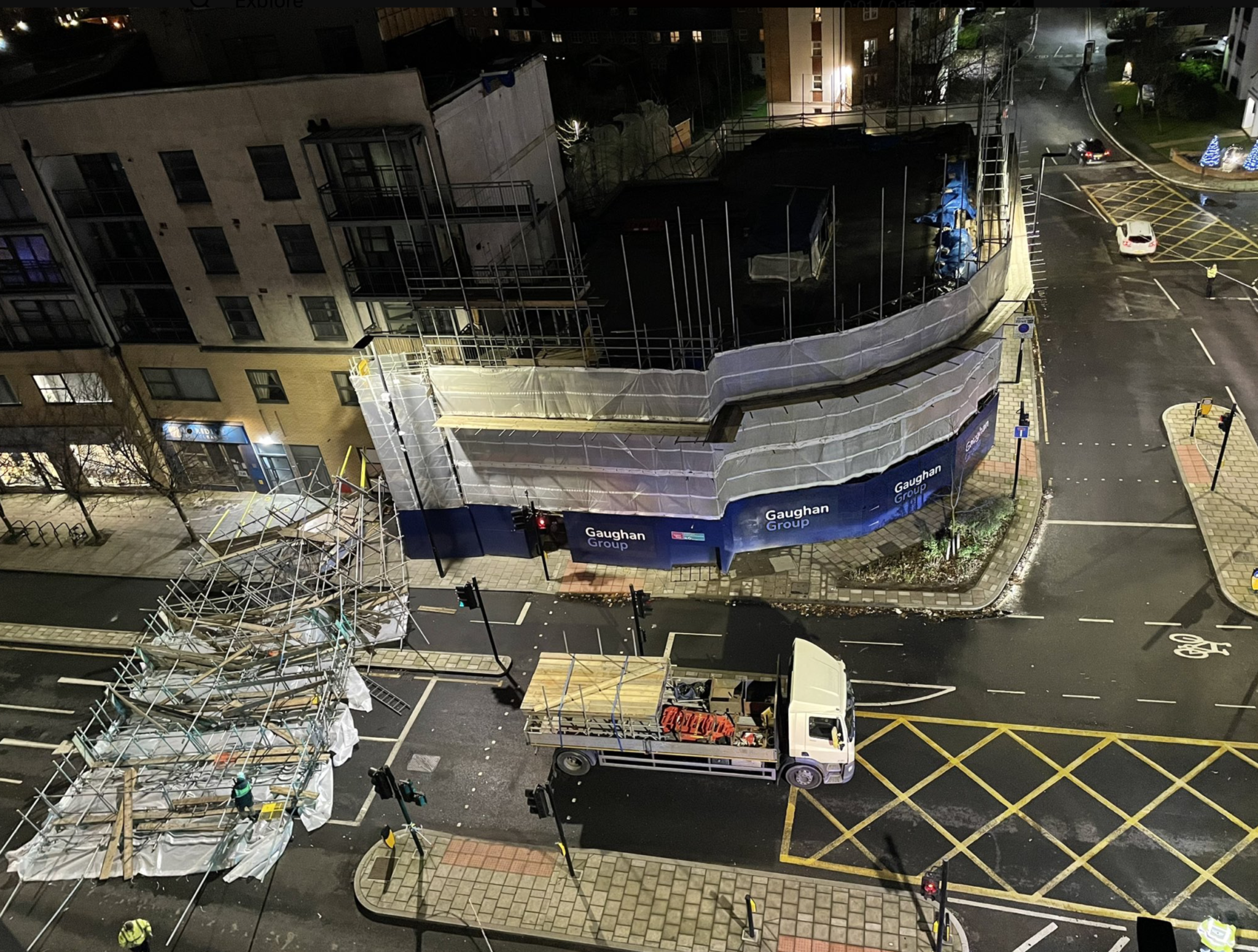 Footage shared on social media shows a huge scaffolding structure collapse, blocking three driving lanes and a main cycle lane at around 3.40pm.