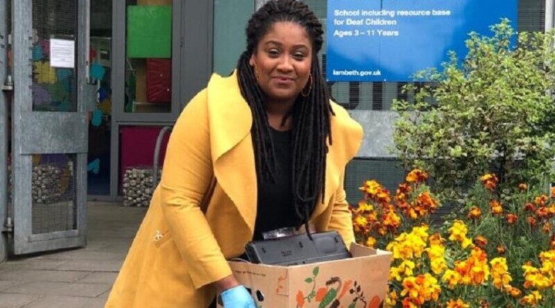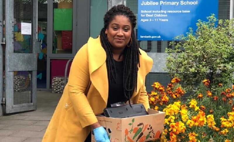 Pictured top: Bell Ribeiro-Addy MP delivers the first batch of laptops at Jubilee Primary School in Tulse Hill
