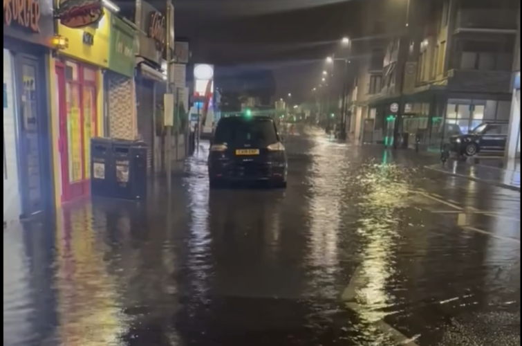 Video footage, filmed by Lee Johnson, shows water pooling along High Street, Colliers Wood, in the early hours this morning.