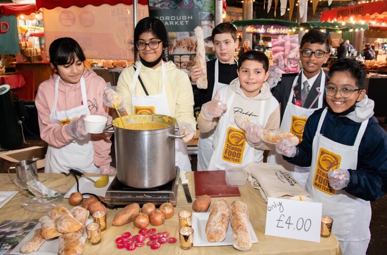 But students from secondary schools took over stalls at Borough Market to sell a special sustainable winter warming lunch of soup and freshly baked bread.