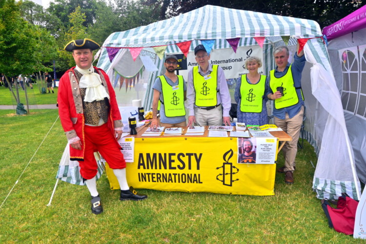 Graham Bisset, Chairman of Sutton Amnesty, said: “We were pleased that so many people stopped at our stall to sign letters for Dr. Mohammed al-Roken, Toomaj Salehi, Alaa Abdel Fattah and Maria Ponomarenko, including the Town Cryer, Jeff Richards.”