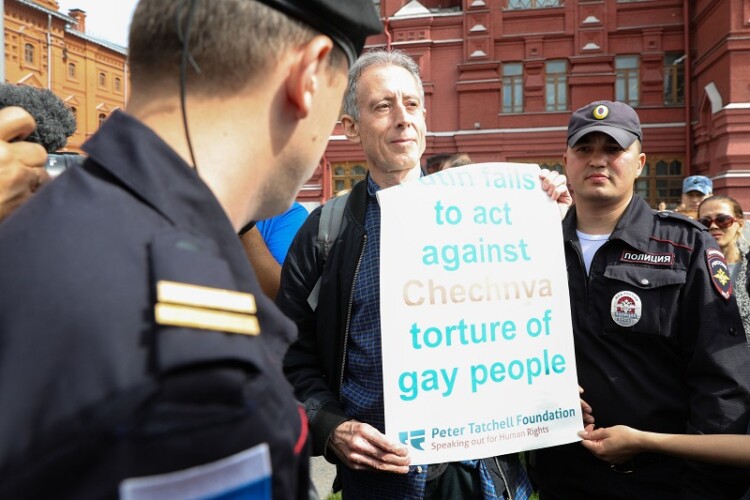 Southwark-based Mr Tatchell was protesting at the suppression and persecution of homosexuals in Chechnya.