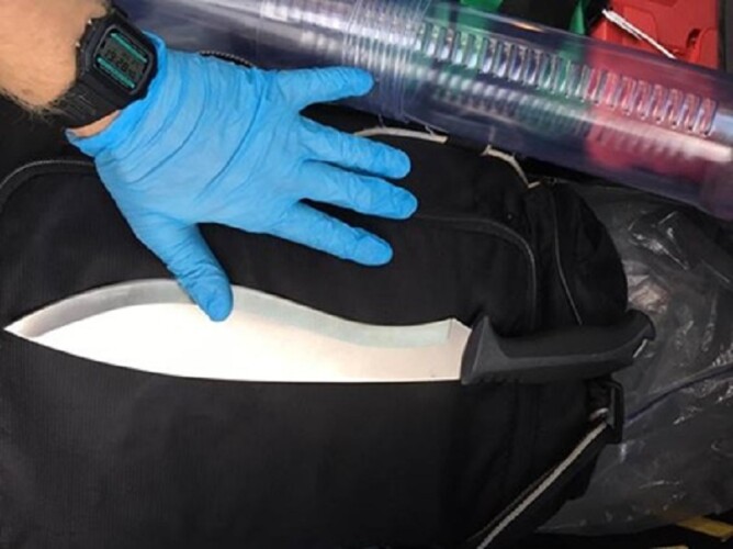 They found he had a large machete so he was arrested on suspicion of possession of an offensive weapon – as well as possession of class B drugs. He remains in police custody.