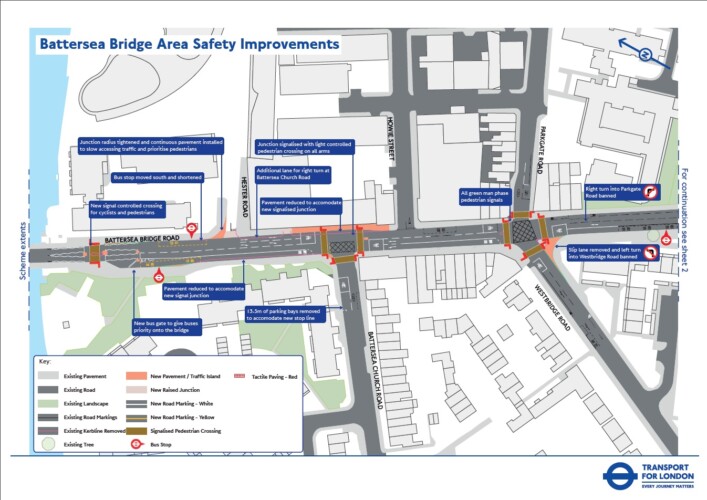 New signalised pedestrian crossings will also be installed at the junction of Battersea Bridge Road and Prince of Wales Drive, and at the southern end of Battersea Bridge and road markings throughout the Battersea Bridge area are set to be improved.