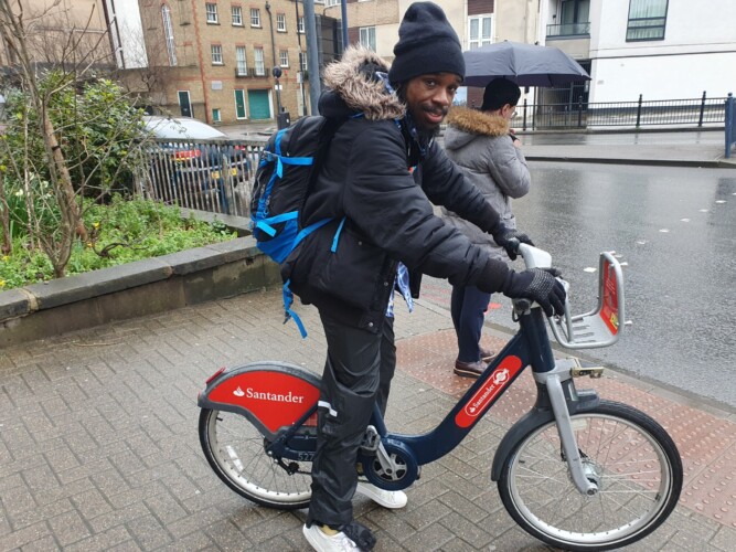 “It’s really difficult and dangerous,” she said. “It’s dangerous because there’s no signs for cycling, so I have to follow the pedestrians.”
