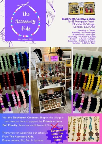 In October 2021, The Accessory Kids, originally known as The Art of Em, opened its first stall at the school’s cake sale, and has continued to sell their wares at school events, as well as at their stall at Blackheath Creatives.
