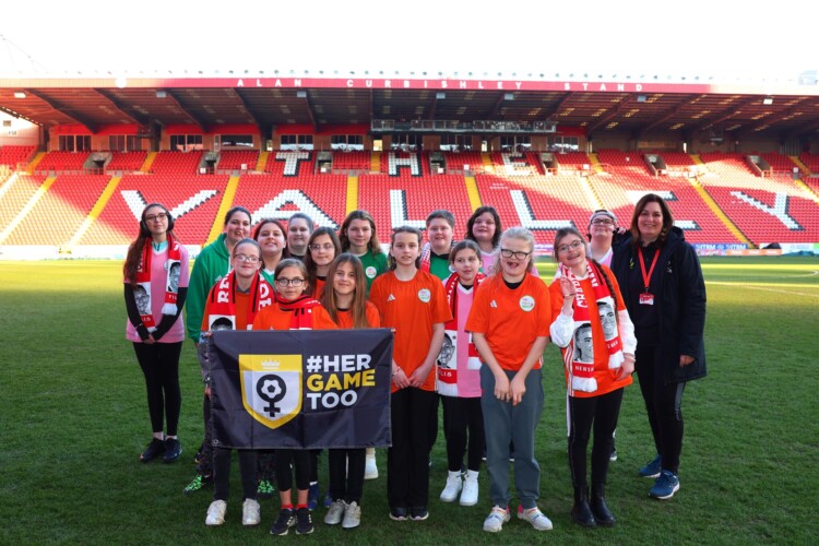 Ahead of the game, which ended in a 1-1 draw, the girls were busy in the Bartram’s fan zone creating mascot shakers and banners to promote the Her Game Too campaign which aims to tackle sexism in sport.