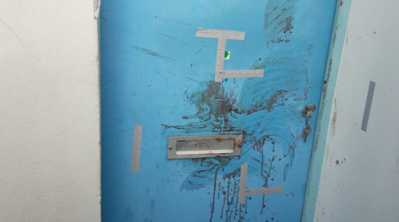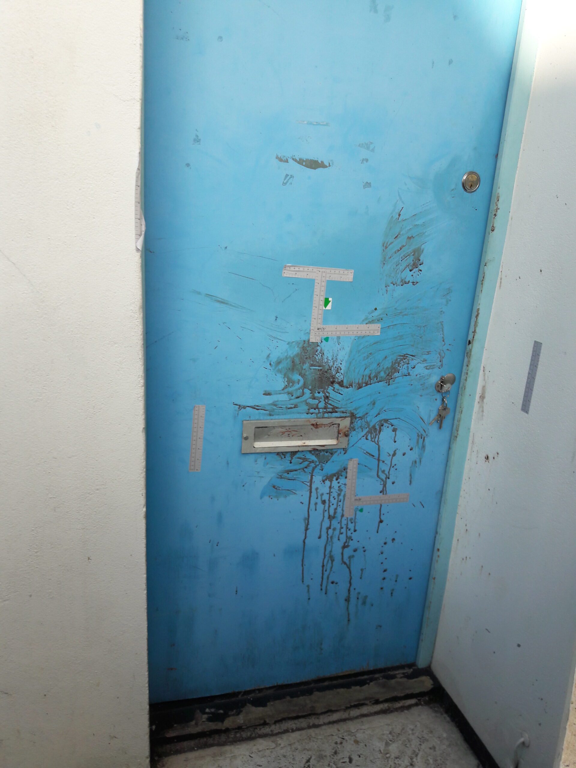 Pictured top: Mr Morton’s front door with blood all over it (Picture: Handout)