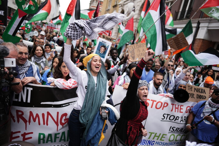 Thousands march through London calling for ceasefire in Gaza on Nakba anniversary