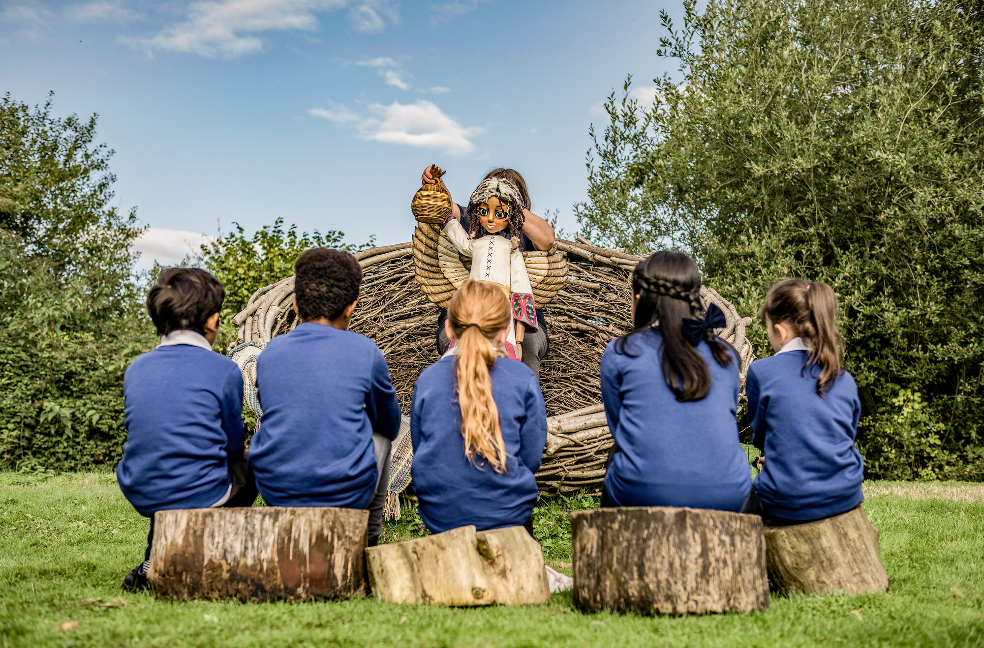 Pictured top: Children taking part in the Generation Wild project with a sculpture of the stories central character, Ava (Picture: Nigel Wilson)
