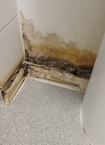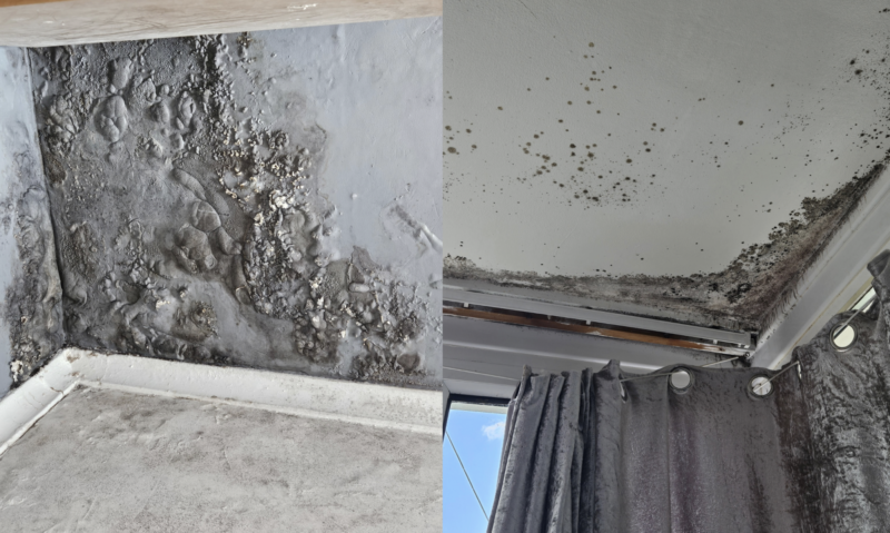 Damp and mould have spread across the properties walls and inside the family’s cupboards.