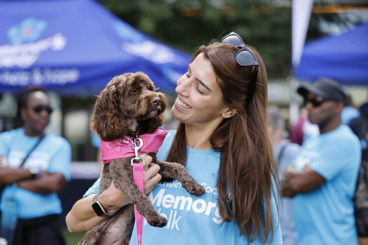 One fundraiser with her four-legged friend at the Memory Walk on Sunday (Picture: Alzheimer’s Society)
