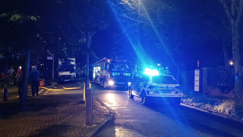 Firefighters used a 13.5metre ladder to rescue three people trapped on the second floor. All three were treated at the scene for smoke inhalation by the London Ambulance Service crews.