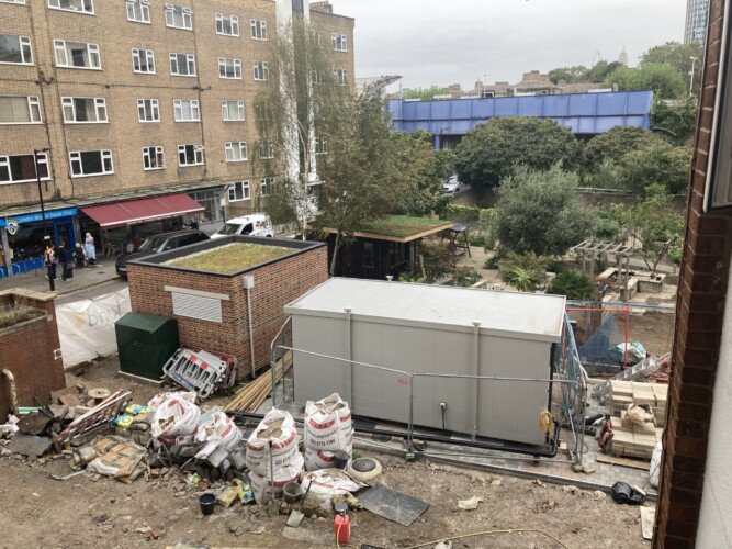 Pictured top: Flats in Styles House overlook a construction site (Picture: Robert Firth)