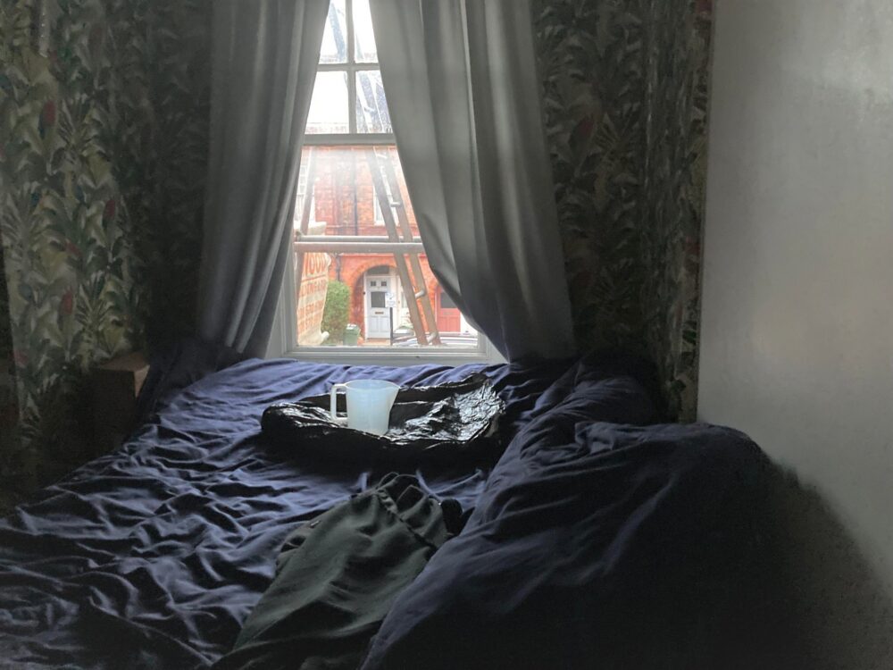 Cissy, pictured above, has to line the house’s beds with dustbin liners to stop water from ceiling leaks ruining the duvets.