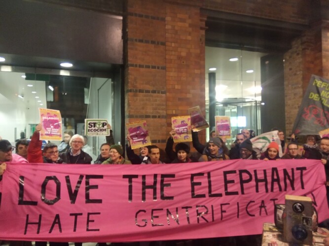 Pictured top: A previous protest to save the Elephant and Castle shopping centre