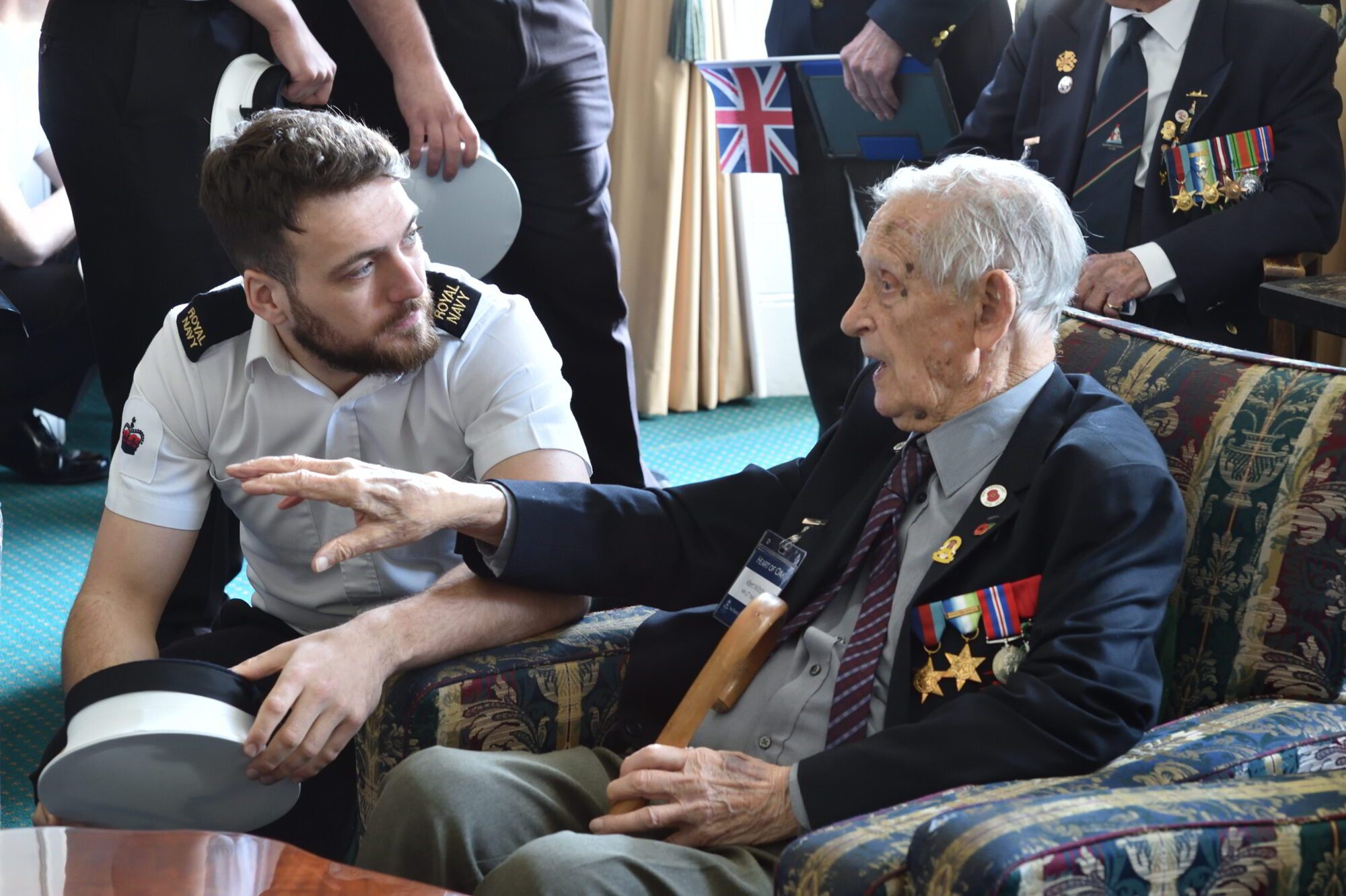 Pictured top: Albert chats to a fellow navy man at Southwick House in Hampshire, where veterans meet, in April 2019 (Pictures: Dick Goodwin, Taxi Charity for Military Veterans)