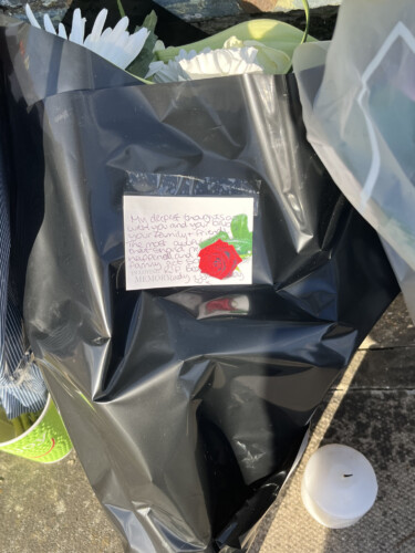Flowers, candles and messages have been laid at the scene of the collision, outside Sutcliffe Park Sports Centre.