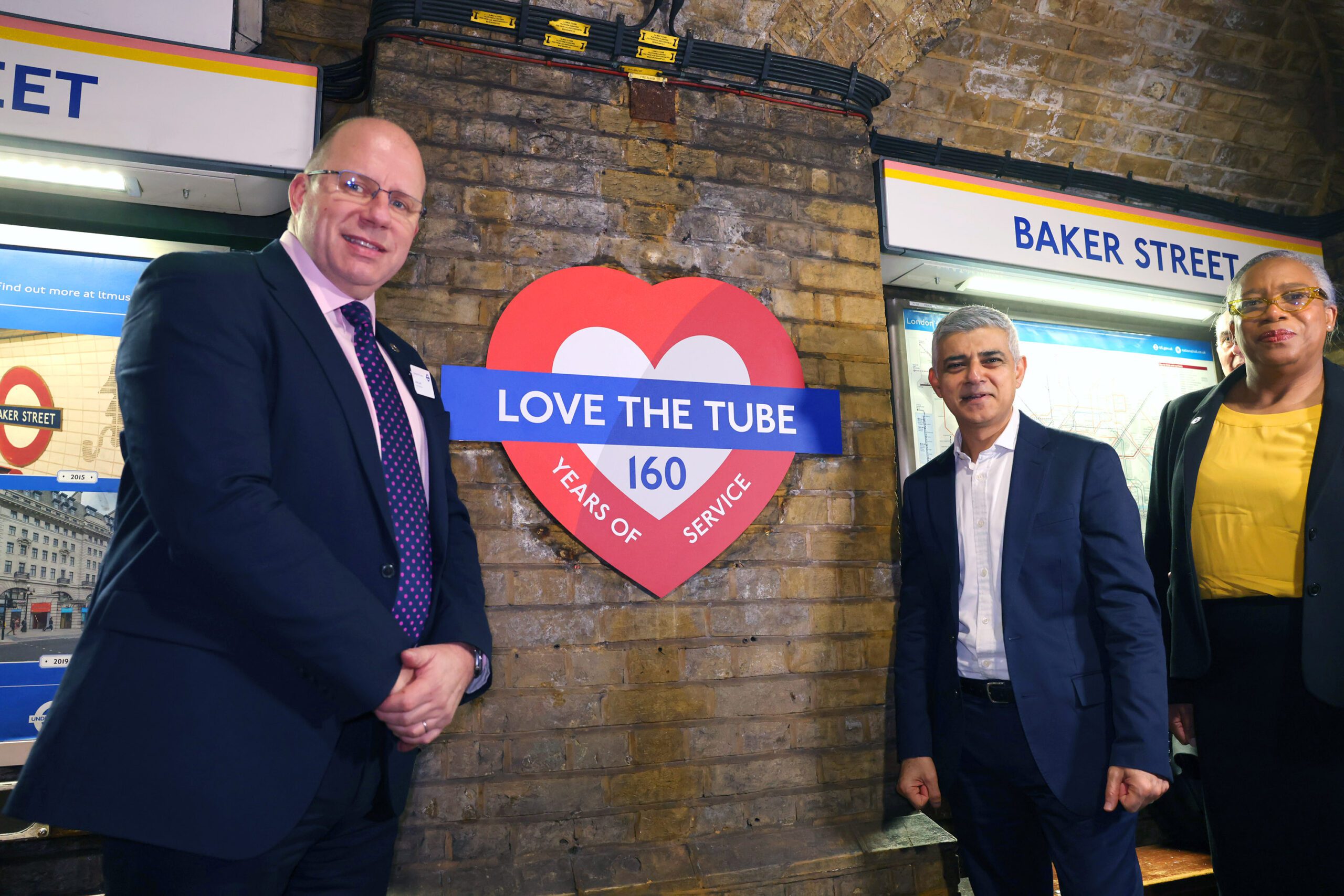 The Mayor of London, Sadiq Khan, this week met London Underground staff at Baker Street – one of the original stations, which opened on January 10, 1863, and also unveiled a special 160th year roundel, Love the Tube, that customers will be able to spot at stations across the network.