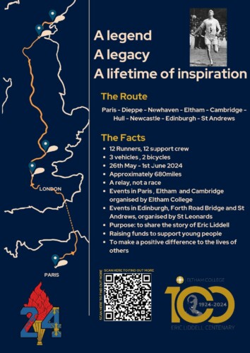 Twelve students are running from Paris to Scotland to mark the centenary of former student Eric Liddell’s Gold medal in the 1924 Olympic games.