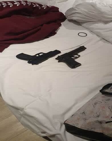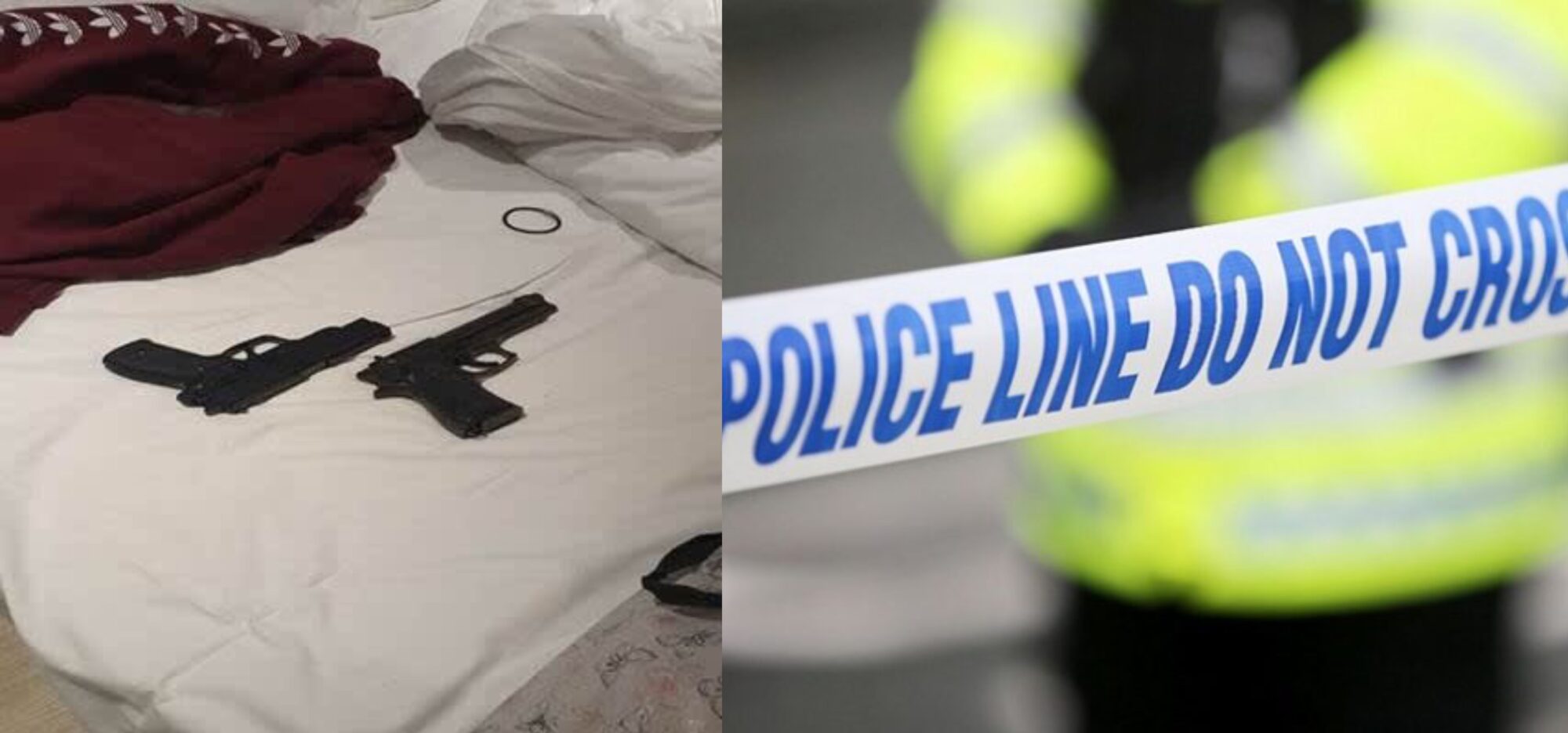 Two suspected handguns and a suspected shotgun were seized and have been sent for forensic examination.