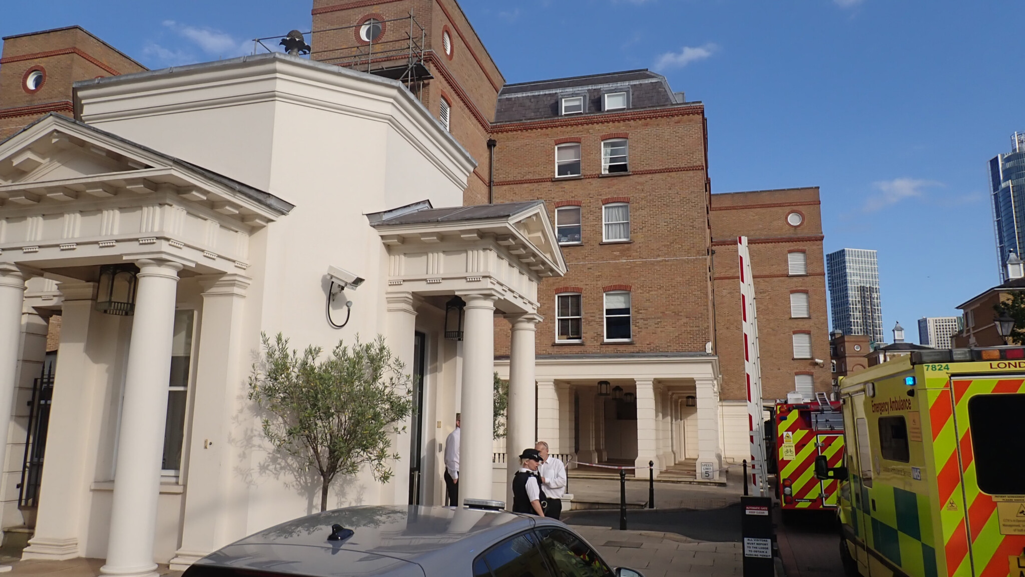 Pictured top: Police and ambulances attend the scene of the fire in Lindsay Square, Pimlico yesterday (Picture: LFB)