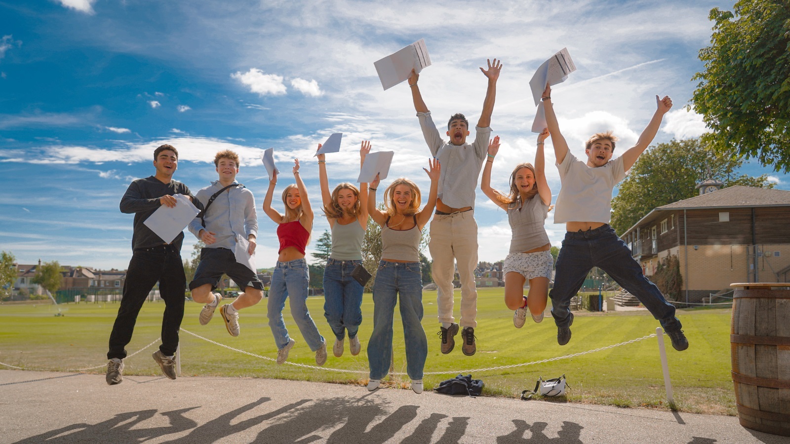 Pictured top: The leap of faith as Alleyn’s students take in some good news (Picture: Alleyn’s School)