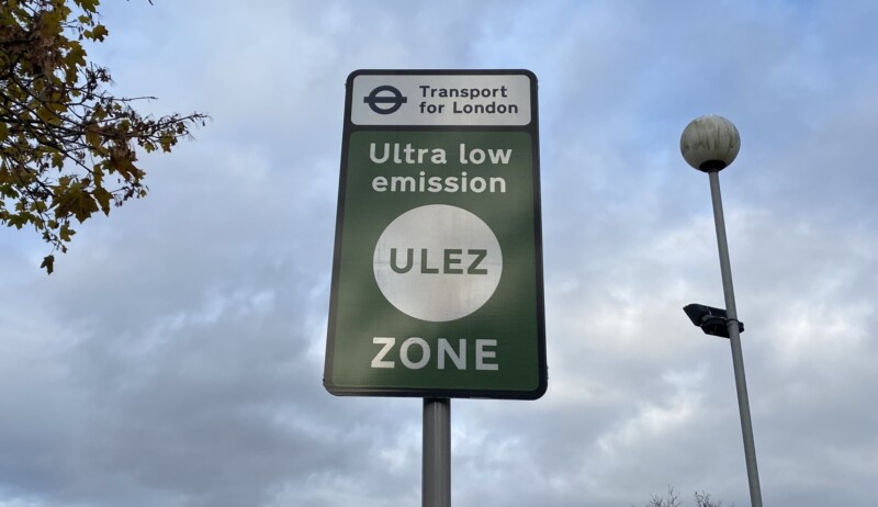 Pictured top: A sign warning drivers of the ULEZ (Picture: James Mayer/LDRS)