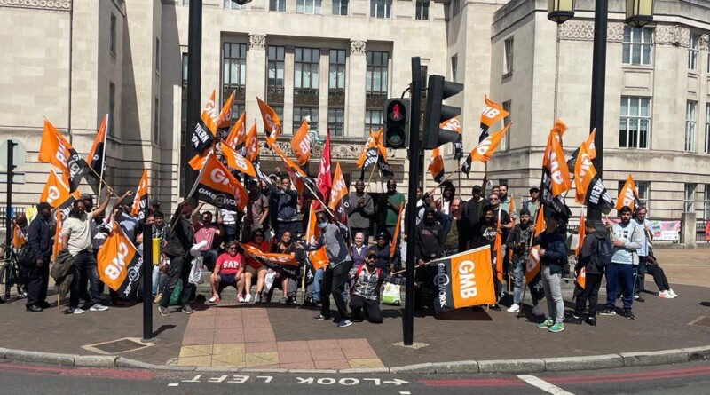 Pictured top: Wandsworth parking wardens protest low pay (Picture: GMB Union)