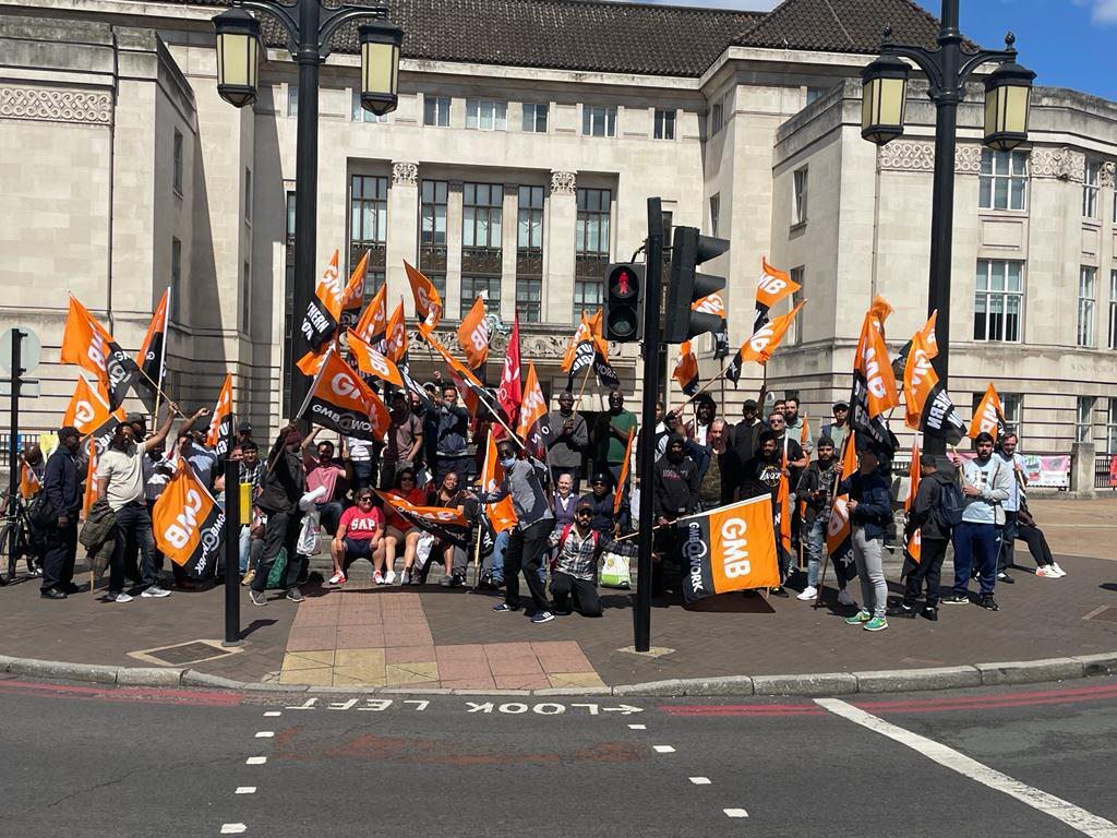 Pictured top: Wandsworth parking wardens protest low pay (Picture: GMB Union)