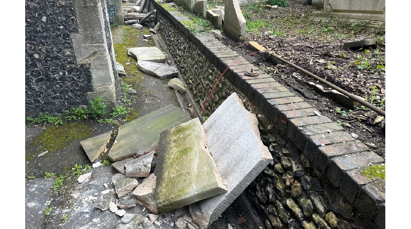 One of the smashed gravestones was ‘tagged’ with the words “007 mad maj” and “love you”. While the historic church does have CCTV it did not capture any of the destruction in the churchyard.