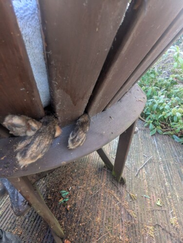 RSPCA Inspector Clive Hopwood, who attended the incident, said: “The poor fox had managed to get both front paws and one back paw wedged between the wooden slats in the back of a garden chair.