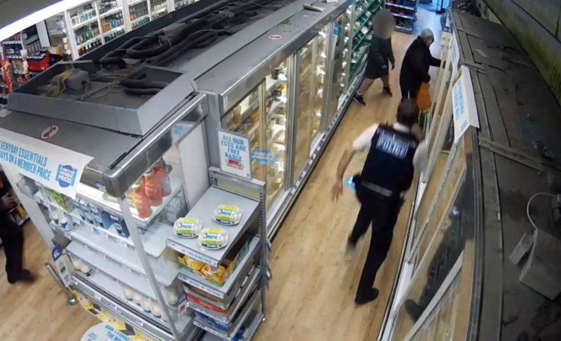 CCTV footage shows the moment police catch Derick Bell shoplifting from the Co-Op in Lower Marsh (Picture: The Met)