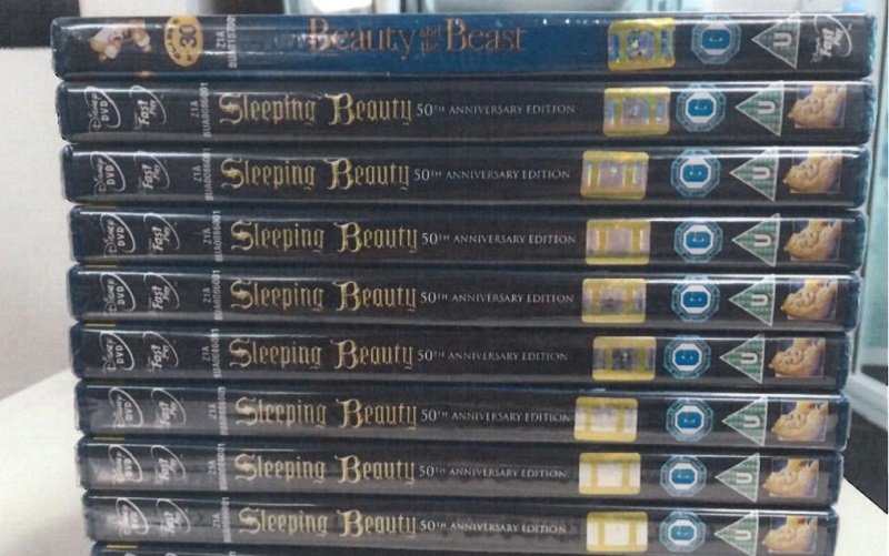 Counterfeit Disney hologram stickers (pictured above), that had been stuck on certain DVDs to make them appear genuine, were also found.