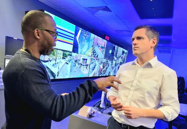 Pictured top: Council leader Simon Hogg checking camera upgrades at the borough’s CCTV control room (Picture: Wandsworth council)