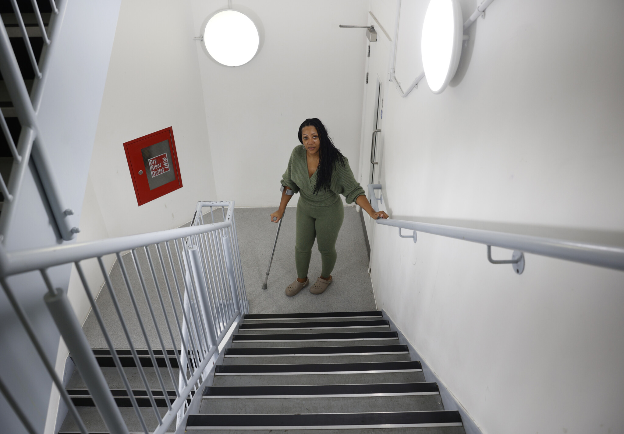 Pictured top: No stairway to heaven for Shamna Finnigan at 27 Enterprise Way (Picture): Facundo Arrizabalaga/MyLondon