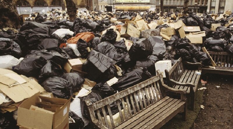 Pictured: Rubbish collection strikes are not new, as this picture from Leicester Square in 1979 showed when mountains of rubbish were dumped due to the continuing strike by dustbin collectors from the City of Westminster in support of a pay claim. Picture: PA