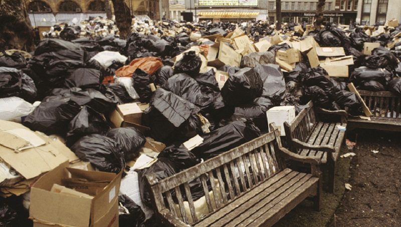 Pictured: Rubbish collection strikes are not new, as this picture from Leicester Square in 1979 showed when mountains of rubbish were dumped due to the continuing strike by dustbin collectors from the City of Westminster in support of a pay claim. Picture: PA