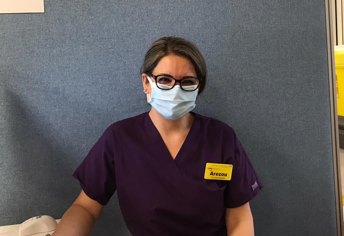 She was given the jab by Arezou Rezvani, who is a member of the hospital’s vaccination team.