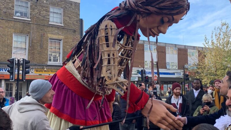 Warm welcome from residents as Little Amal refugee puppet reaches Deptford High Street