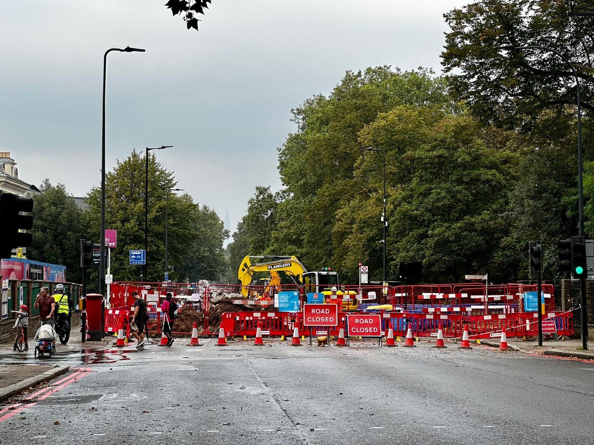 Brixton Hill remains closed between Brixton Water Lane and Elm Park whilst the company works to repair the water main.
