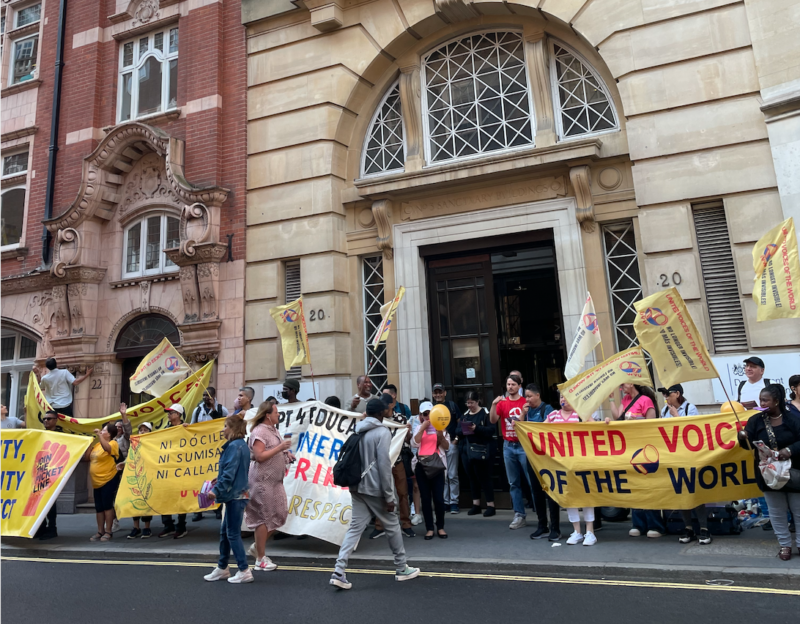 All the workers striking are migrants, the majority are from Latin America and they have been organised by United Voices of the World, a trade union for low-paid migrant workers.
