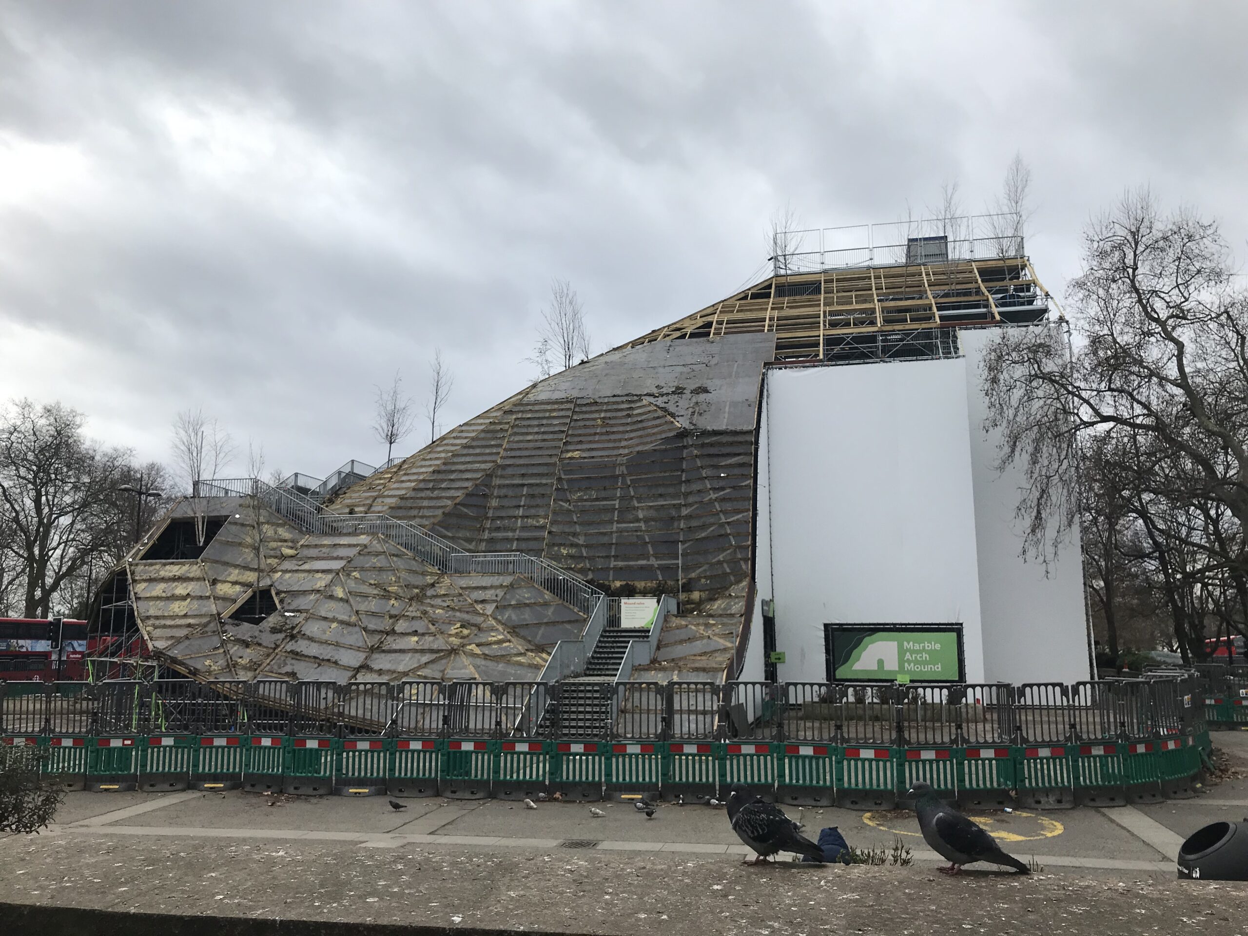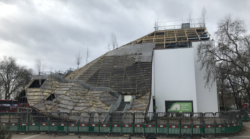 Pictured top: The Marble Arch Mound stripped down (Picture: Jacob Phillips)